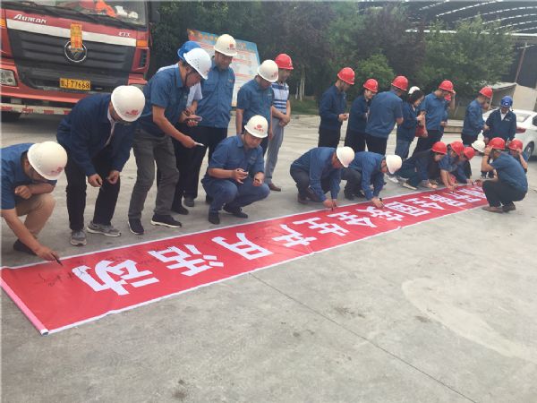最后,全體人員在紅色橫幅上進行了安全承諾簽字。
